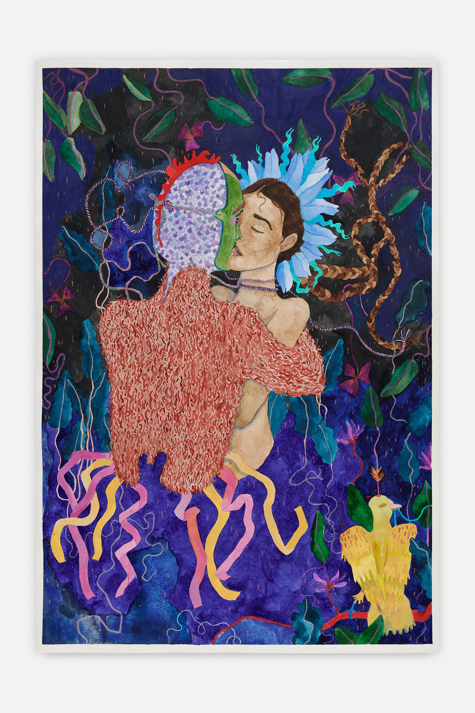 Saya Schulzen’s allegorical works feature symbols and figures from Greek mythology, iconography and, influenced by her own diasporic biography, indigenous cultures. They tell of a sensorial world, in which man and nature no longer move in dual, hierarchical structures, but coexist in close bond and, like a fungus, enter into symbioses.