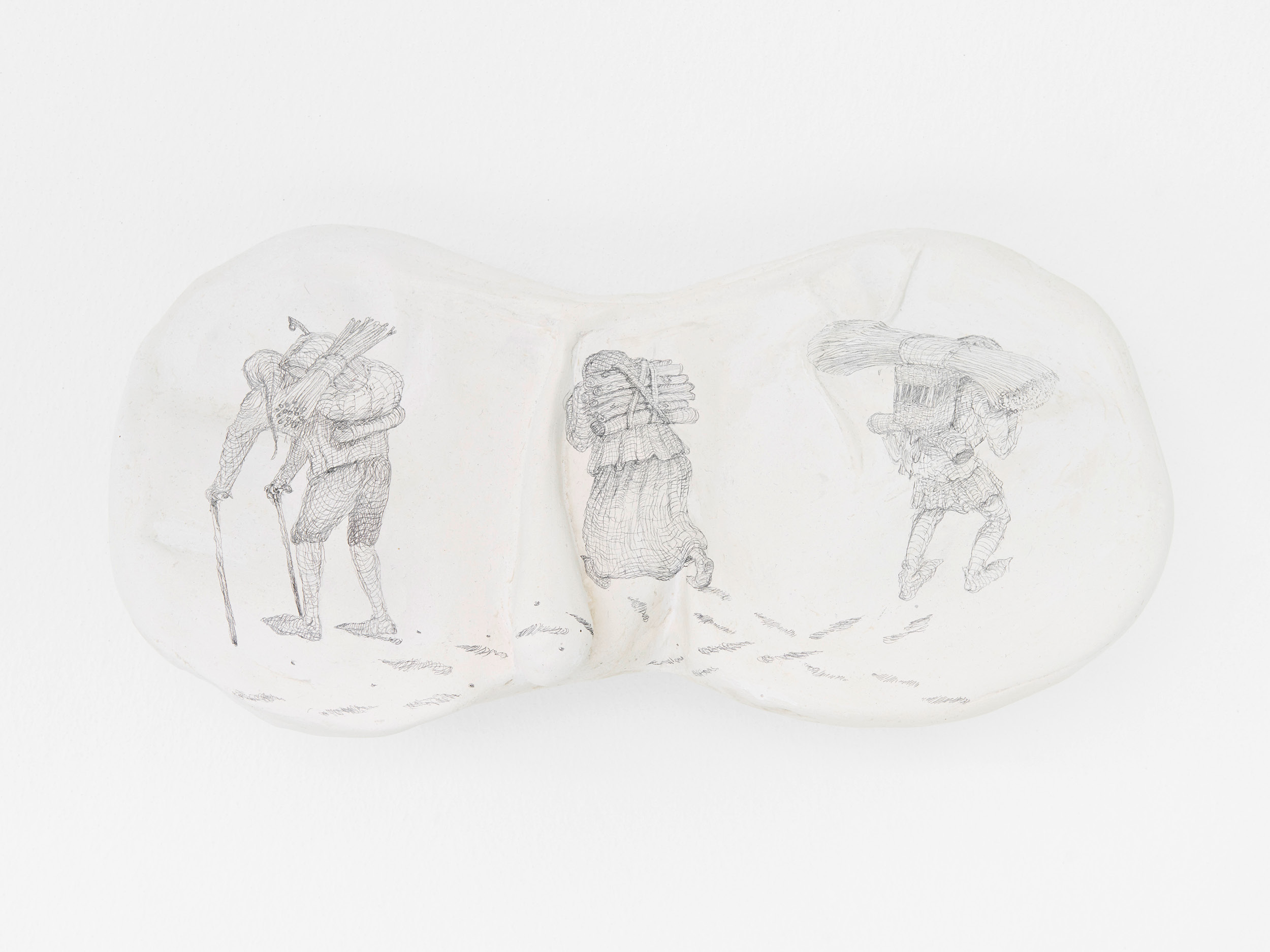 Beth Collar, Peasant workers I, 2023, Pencil on plaster, 35 x 19.5 x 6 cm