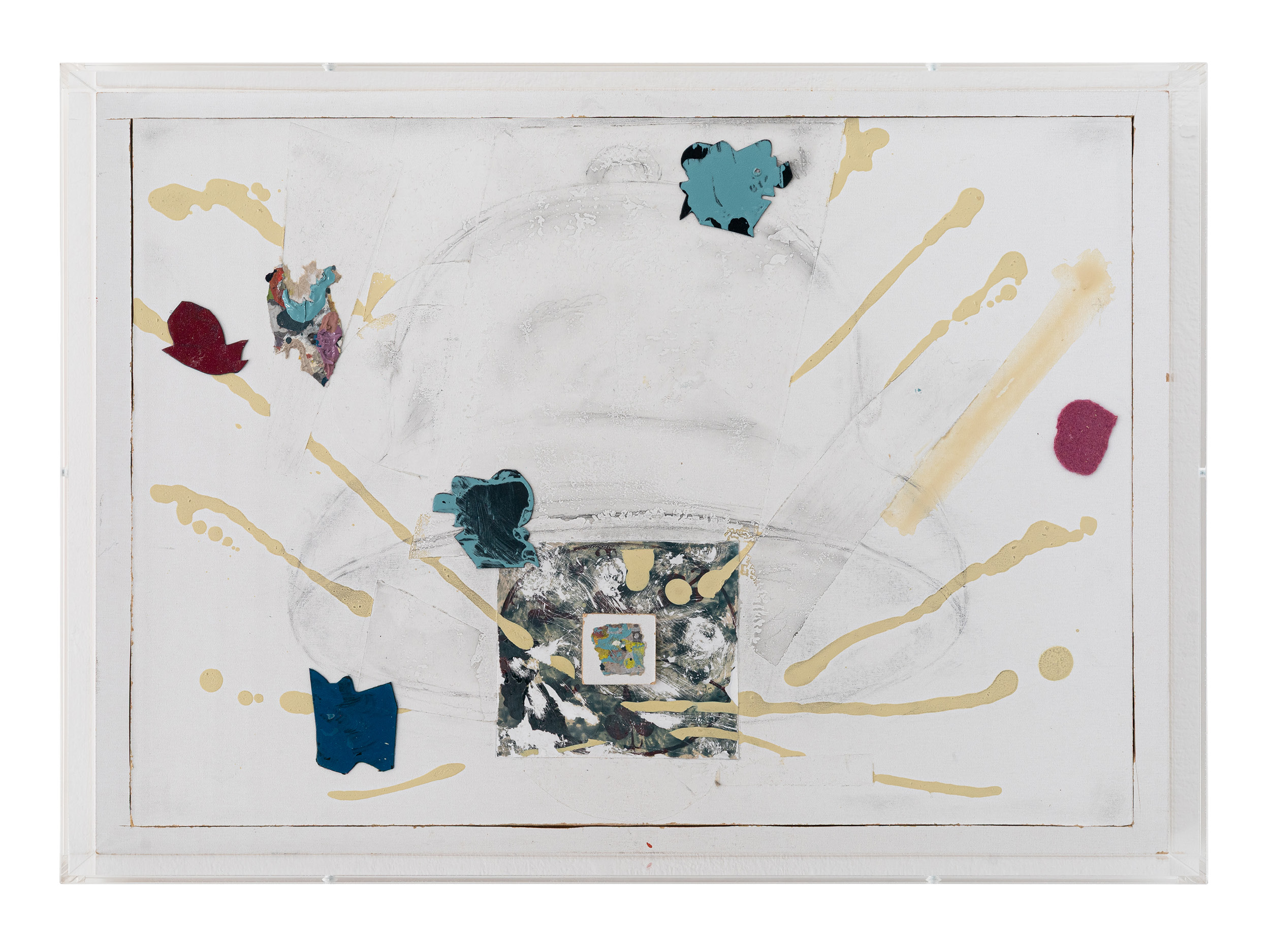 Mitchell Kehe, Sonoluminescence 3, 2025, Graphite, acrylic and collage on board in plexi box, 32 x 45 cm (framed)
