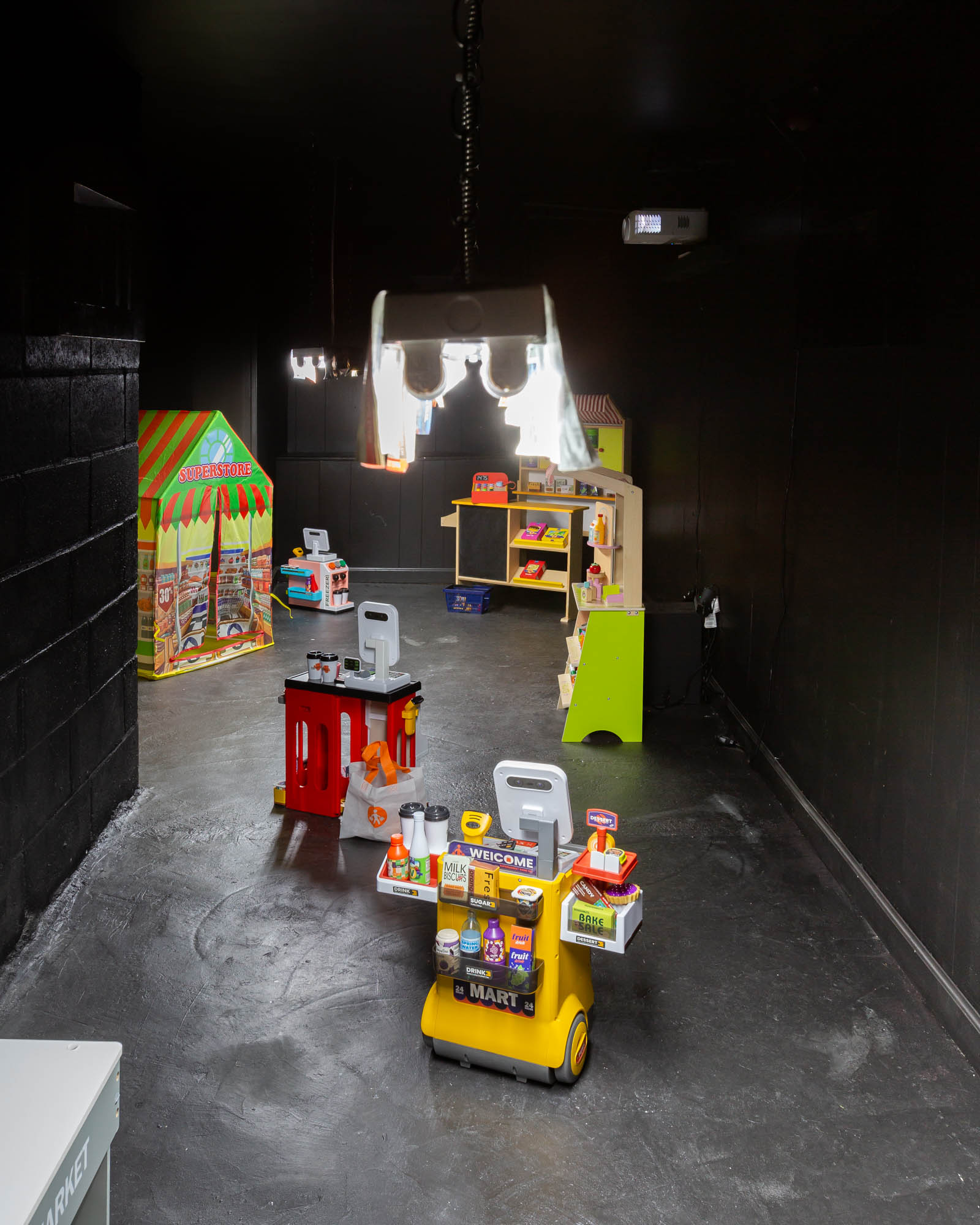 The sun never sees its shadow (A=B=C=D=E=F=G=H=I=J =K=L=M=N=O=P=Q=R =S=T=U=V=W=X=Y=Z), 2025, Play stores and products, dimensions variable